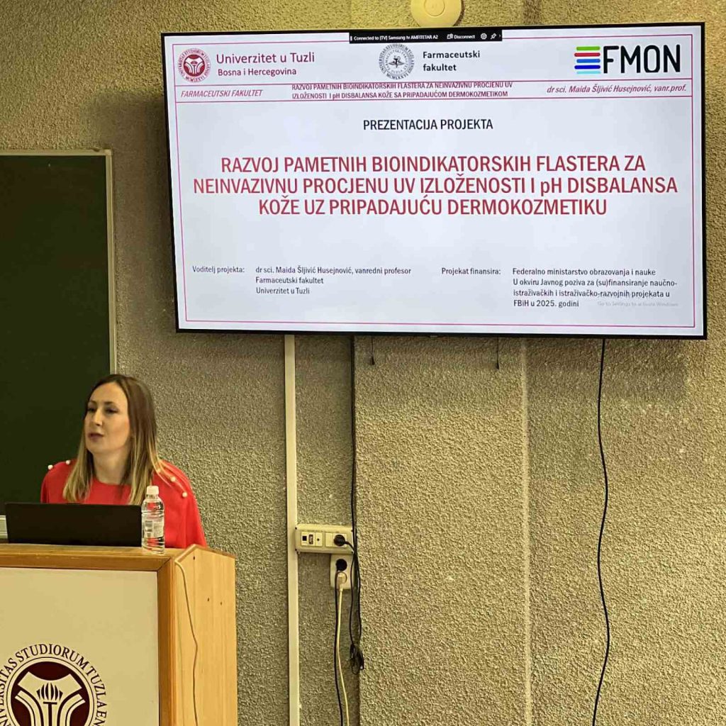 Ispred Farmaceutskog fakulteta, predstavljen je i projekat pod nazivom „Razvoj pametnih bioindikatora – flastera za neinvazivnu procjenu UV izloženosti i pH disbalansa kože sa pripadajućom dermokozmetikom“, čiji voditelj je prof. dr. sc. Maida Šljivić-Husejnović.