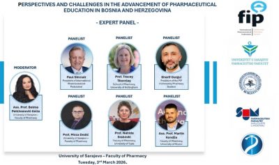 Ispred Studentskog vijeća Farmaceutskog fakulteta Farmakon i Farmaceutskog fakulteta Univerziteta u Tuzli, Emela Ahmetović, studentica II godine studija, i Nejra…